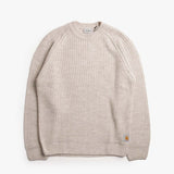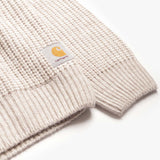 The Carhartt WIP Firth Sweater in in Fleur De Sel is a heavyweight knit designed for warmth, durability and everyday wear. Crafted from a carefully balanced blend of natural and synthetic yarns, including wool, viscose and alpaca, it delivers both softness and structure. The raglan sleeve construction improves mobility and adds a relaxed feel, while the woven Carhartt WIP Square Label at the hem provides a subtle finishing touch. With its textured 3-gauge knit, this jumper is built to withstand repeated wear while remaining comfortable in cooler conditions.