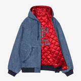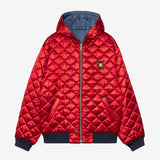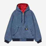 Carhartt WIP 50 Years Anniversary OG Active Jacket - Denim in Blue/USA Red (Stone Bleached) is a special edition piece celebrating half a century of one of the brand’s most iconic silhouettes. First launched in 1975, the Active Jacket became a workwear classic embraced by everyday wearers, subcultures, and creative communities around the world. This anniversary edition elevates the original with a reversible design, featuring stone bleached denim on one side and a diamond-quilted red lining on the reverse. Built with durability, authenticity, and versatility in mind, it captures the enduring legacy of Carhartt WIP while offering two looks in a single garment.